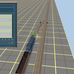 Pociąg pośpieszny wjeżdżając w trigger "y" ustawia zmienną na 1.