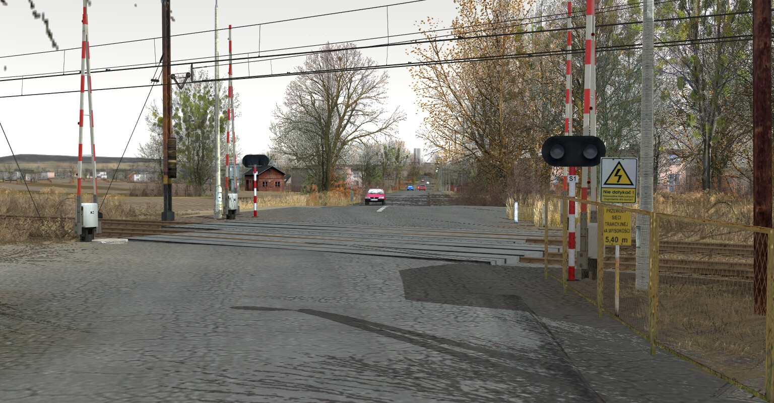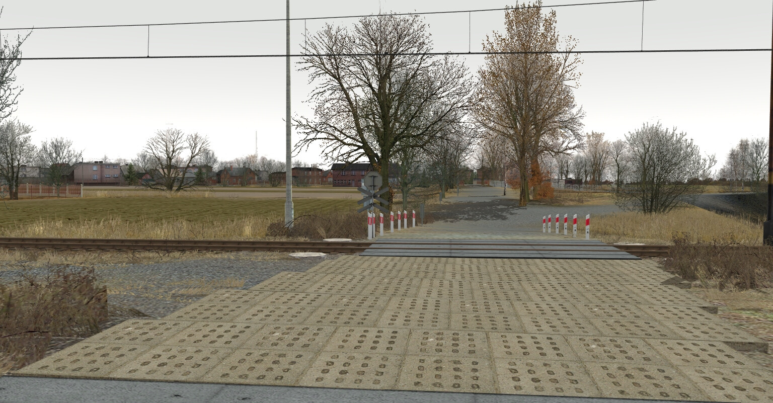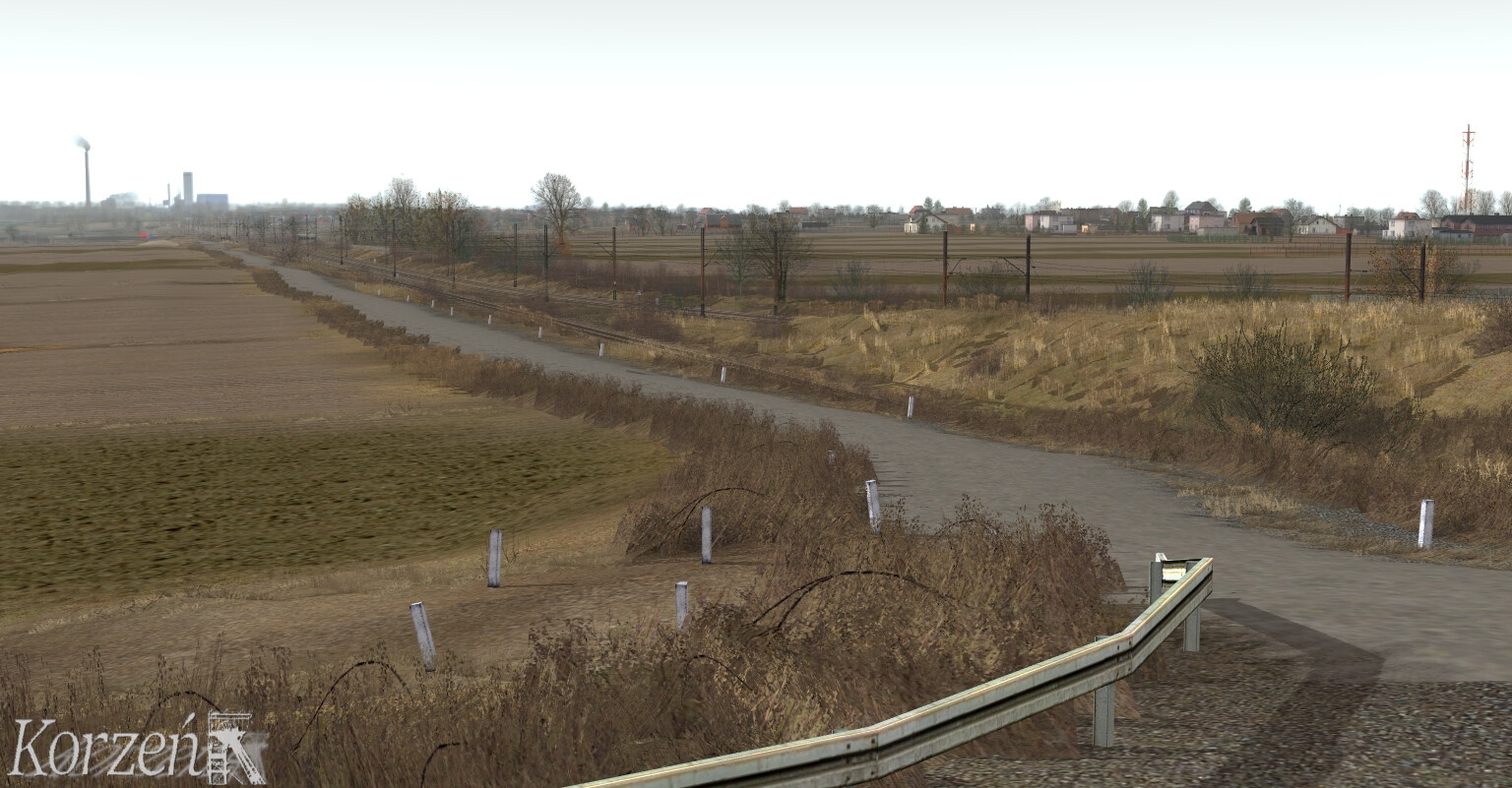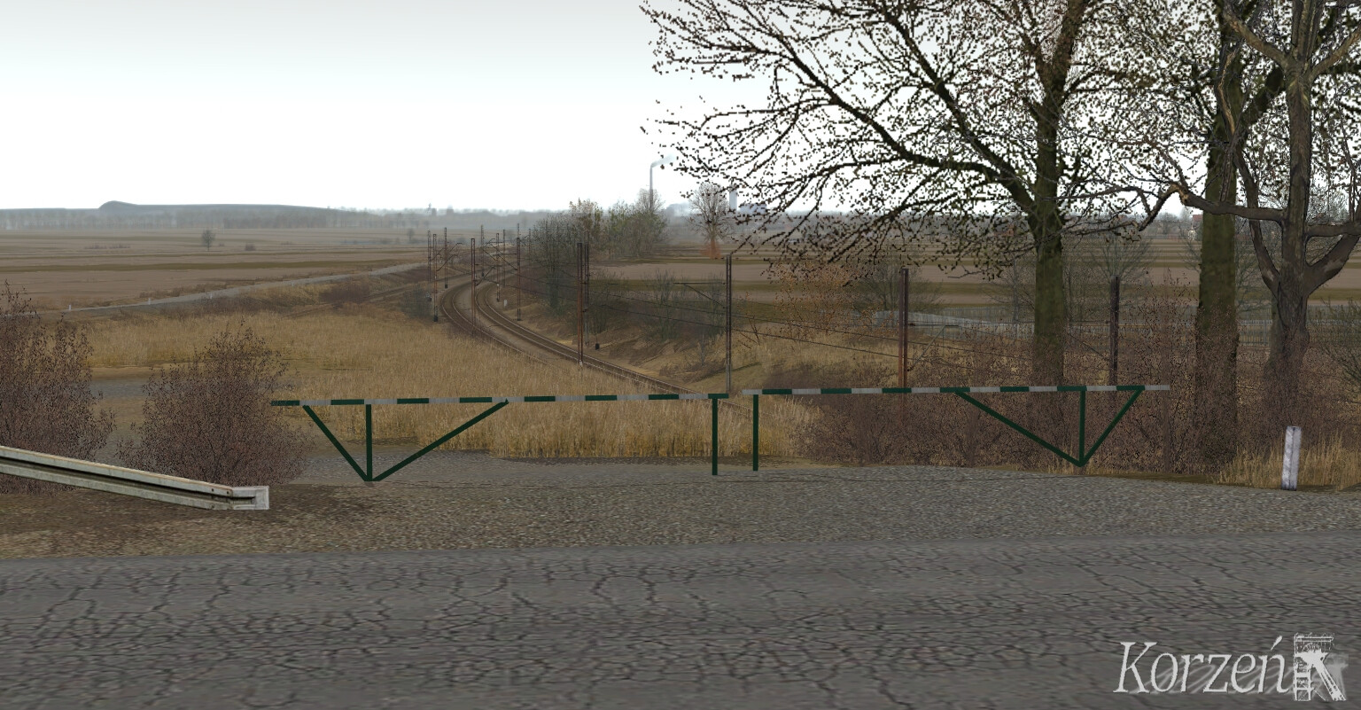 Słupki poprawione i ułożone we właściwym rozstawieniu. Przy okazji dodałem zjazd na pole który przeoczyłem, barierkę energochłonną z prawej strony. Dodałem też szlabany które powinny tam być:
