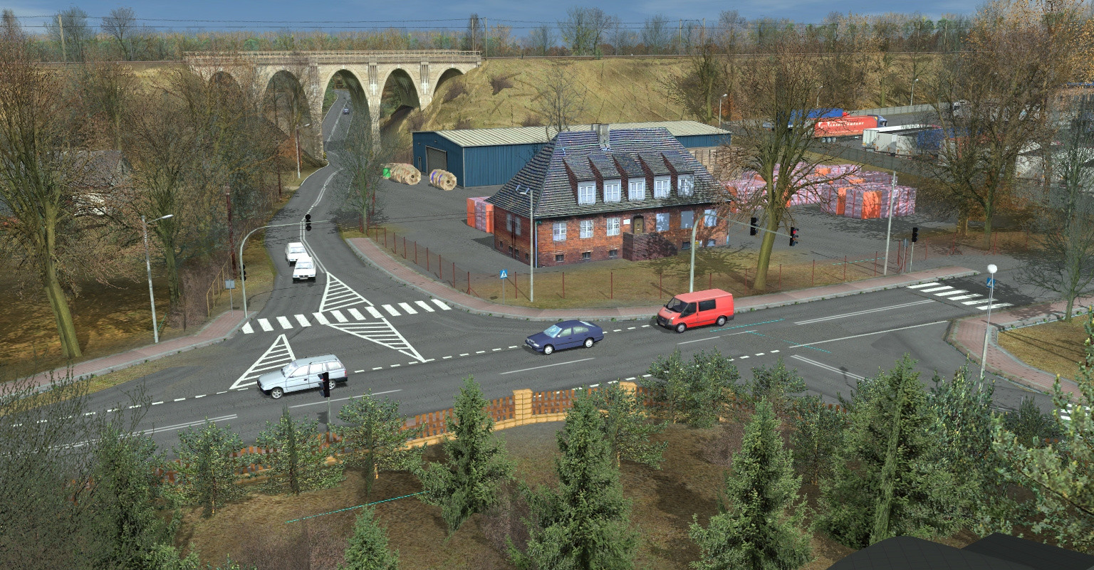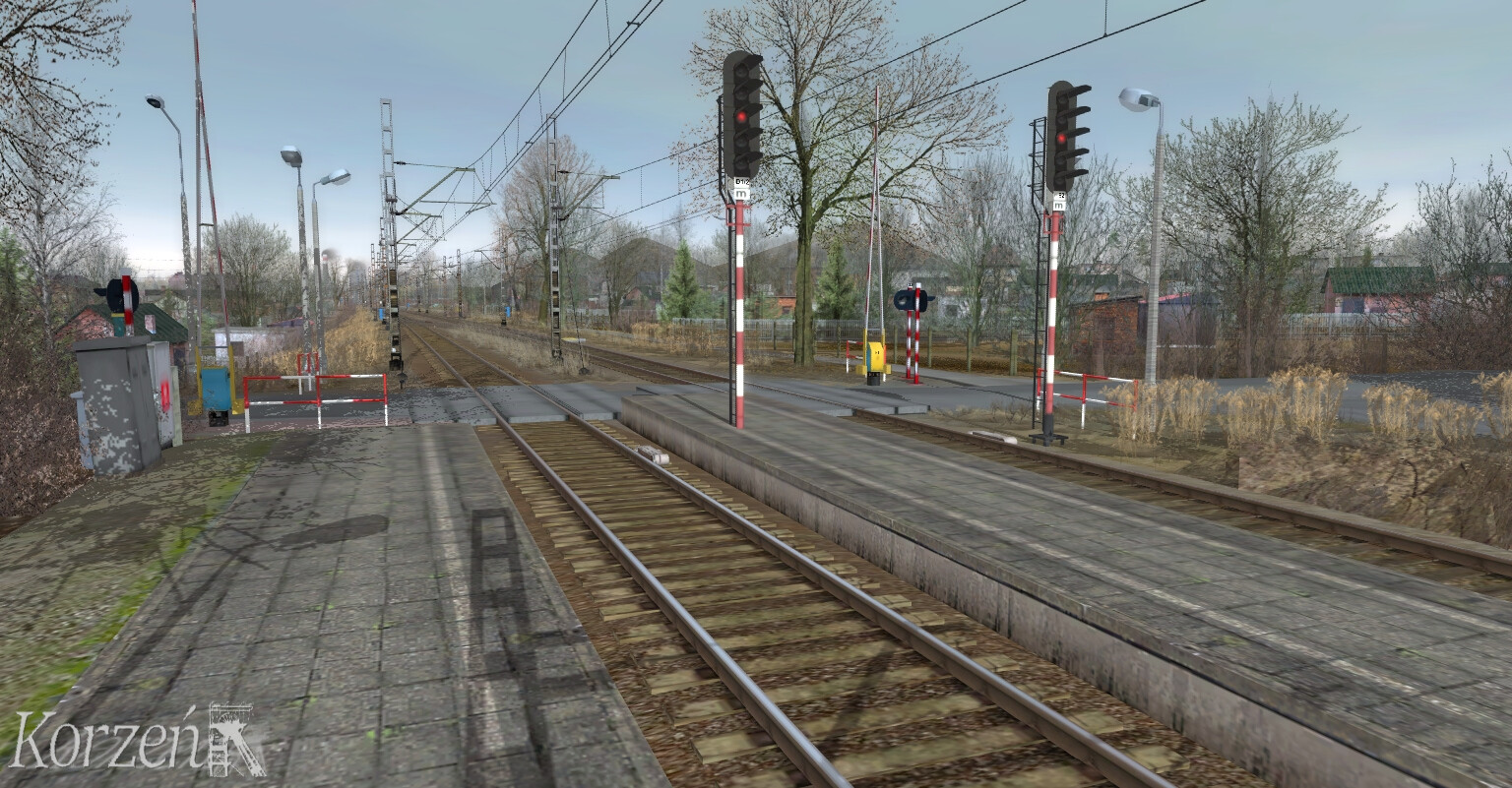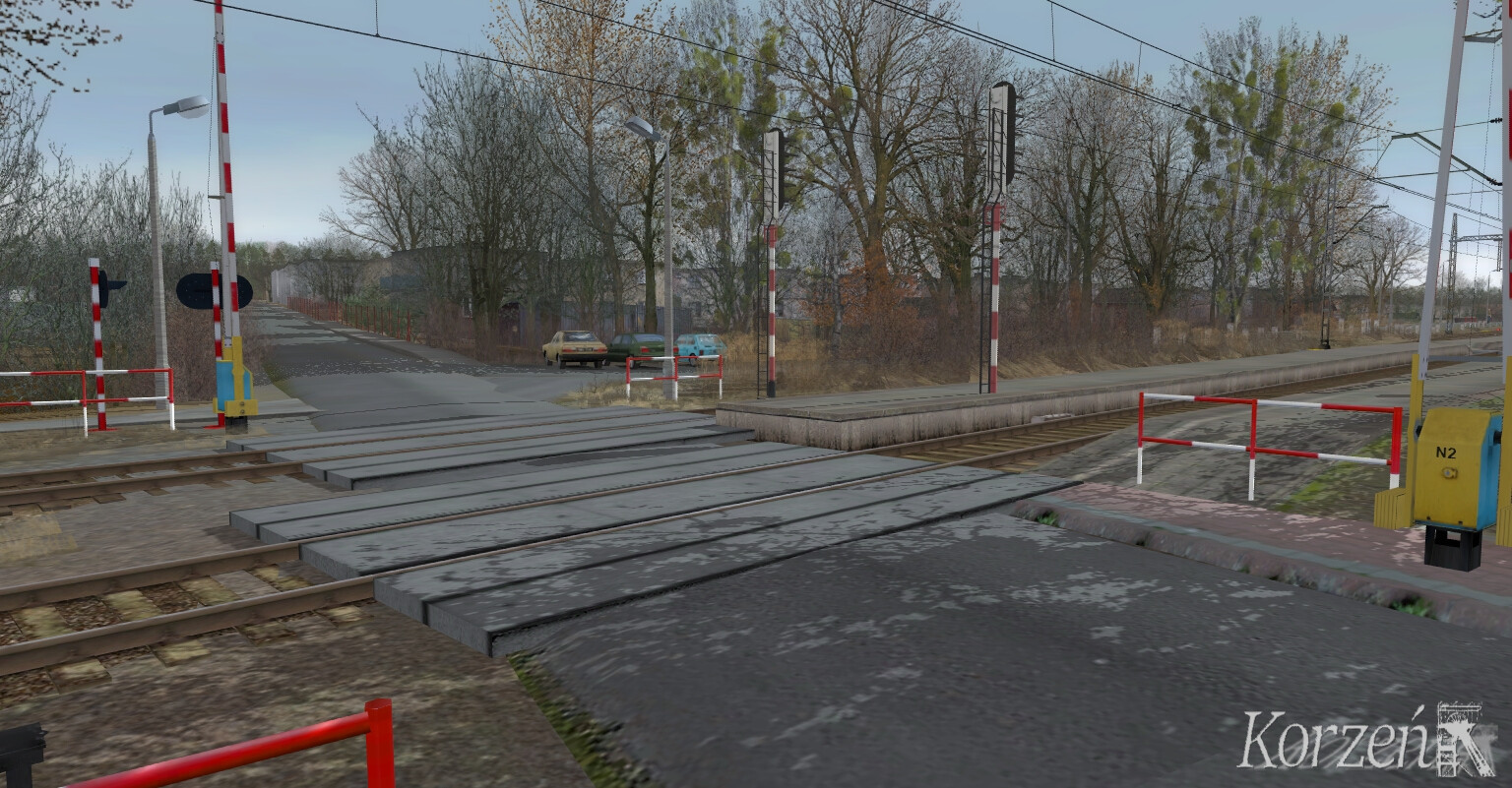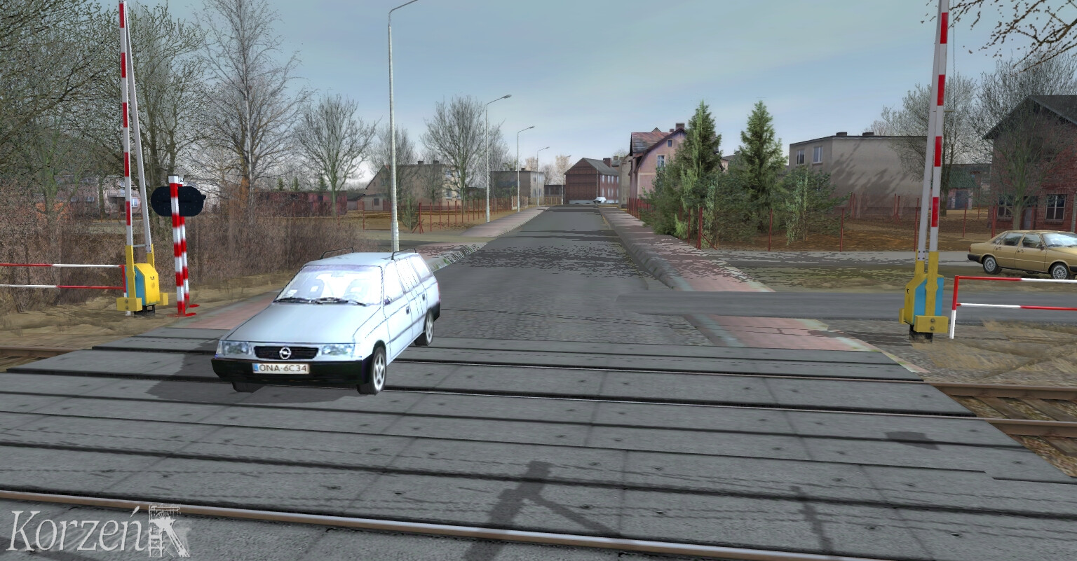 Słupki poprawione i ułożone we właściwym rozstawieniu. Przy okazji dodałem zjazd na pole który przeoczyłem, barierkę energochłonną z prawej strony. Dodałem też szlabany które powinny tam być: