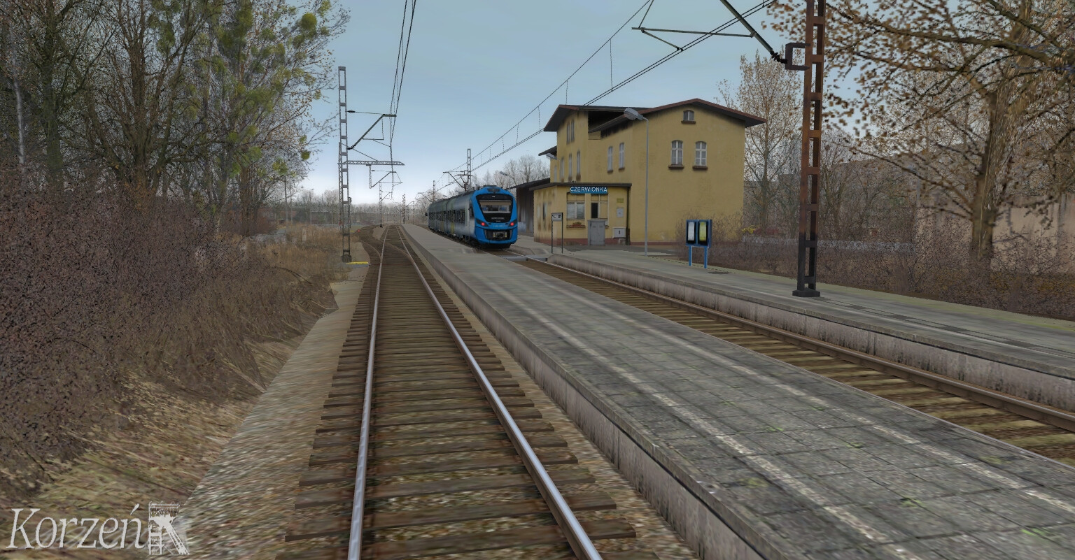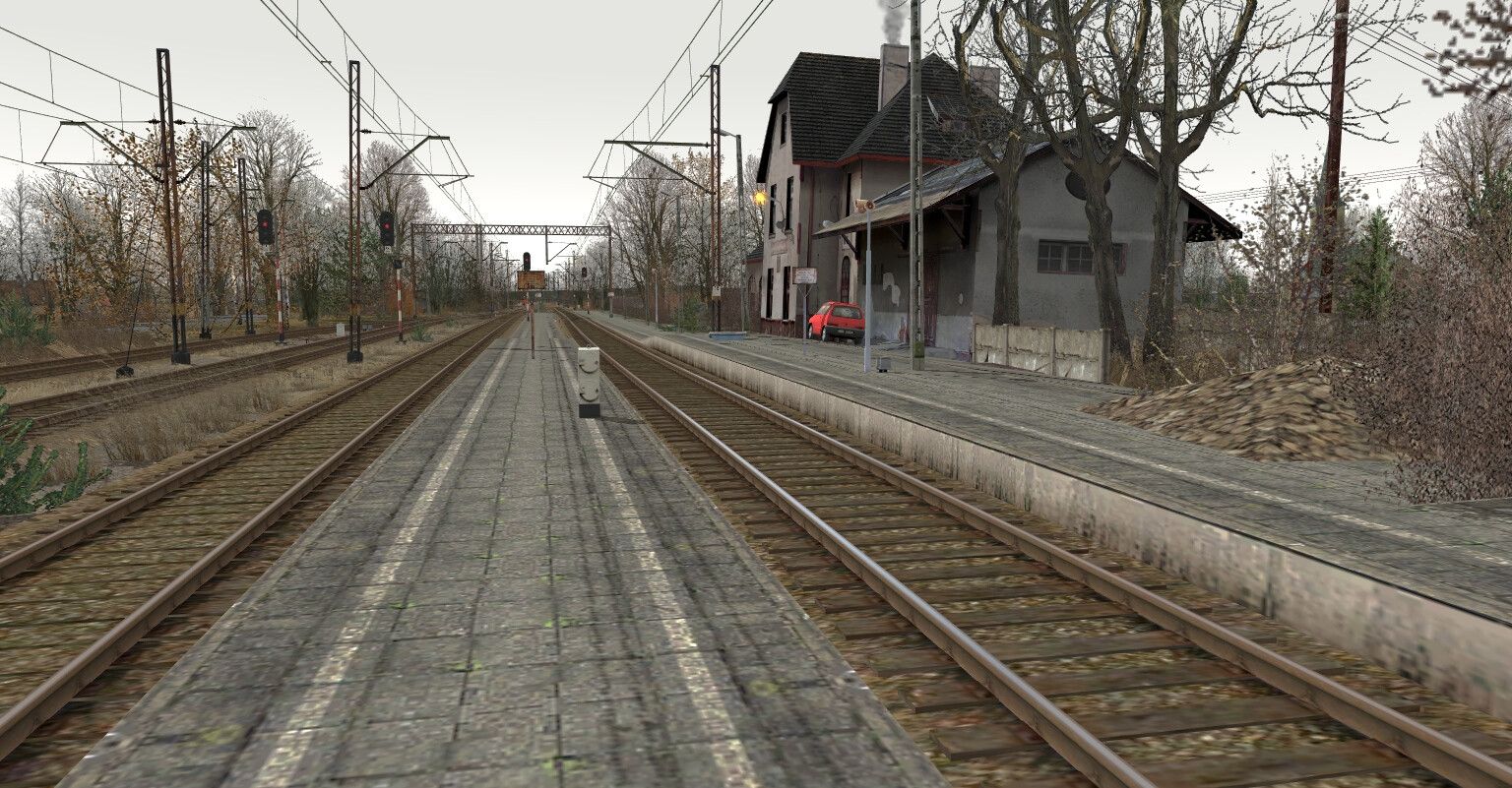 W Szczygłowicach poprawiłem peron i najbliższe otoczenie dworca. Sam budynek przerobiłem w gmaxie i pochyliłem jak w rzeczywistości: