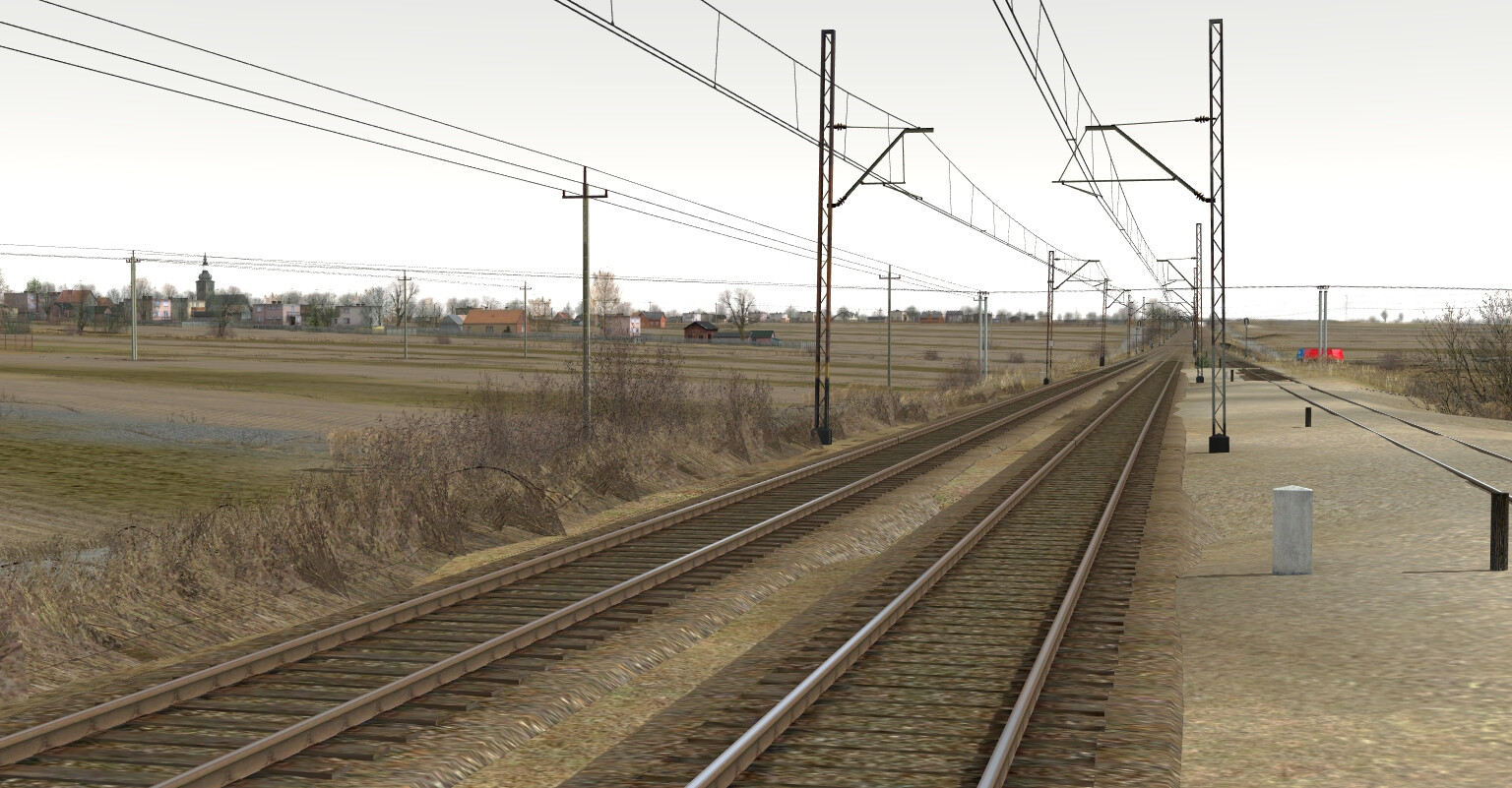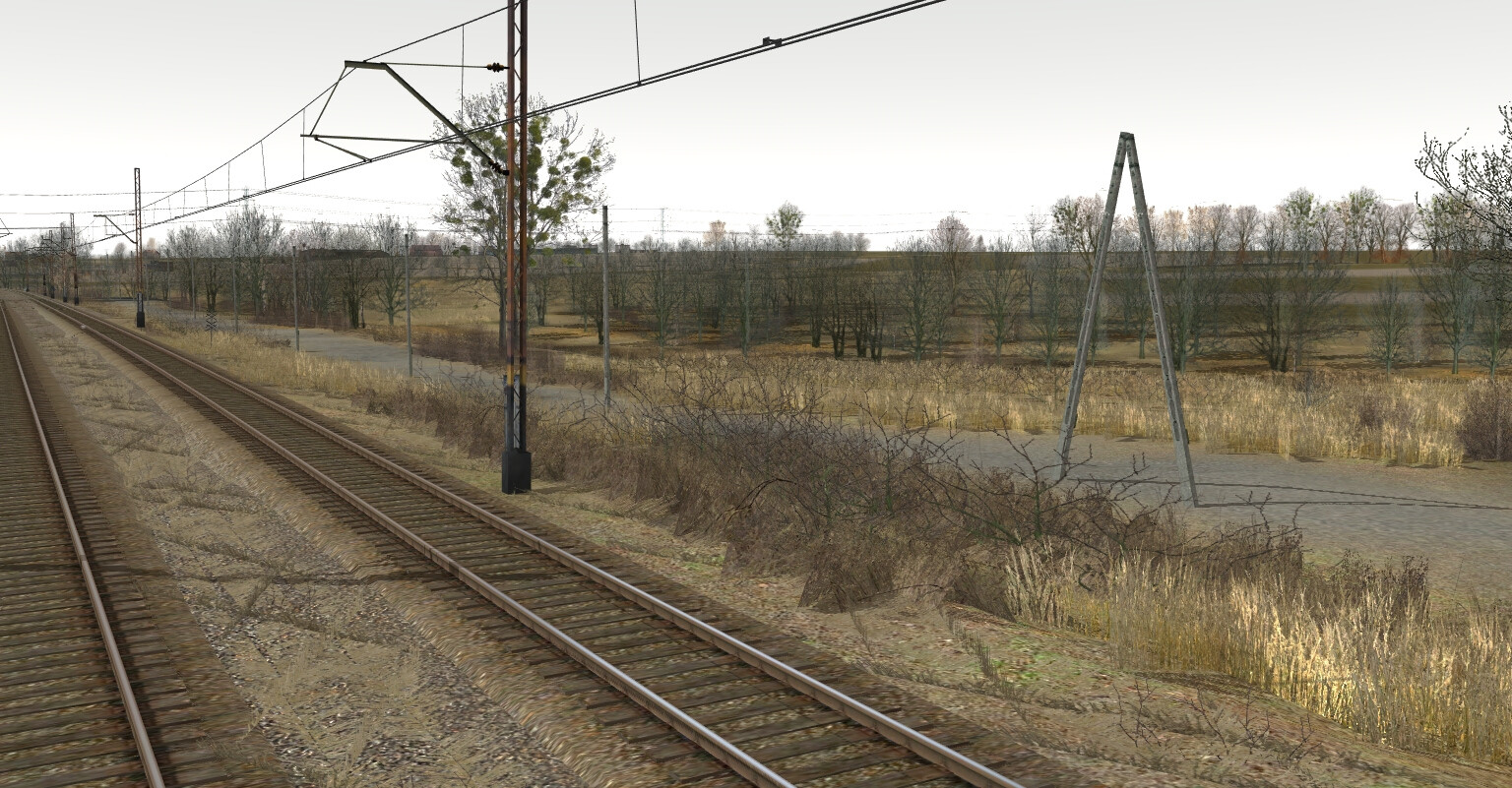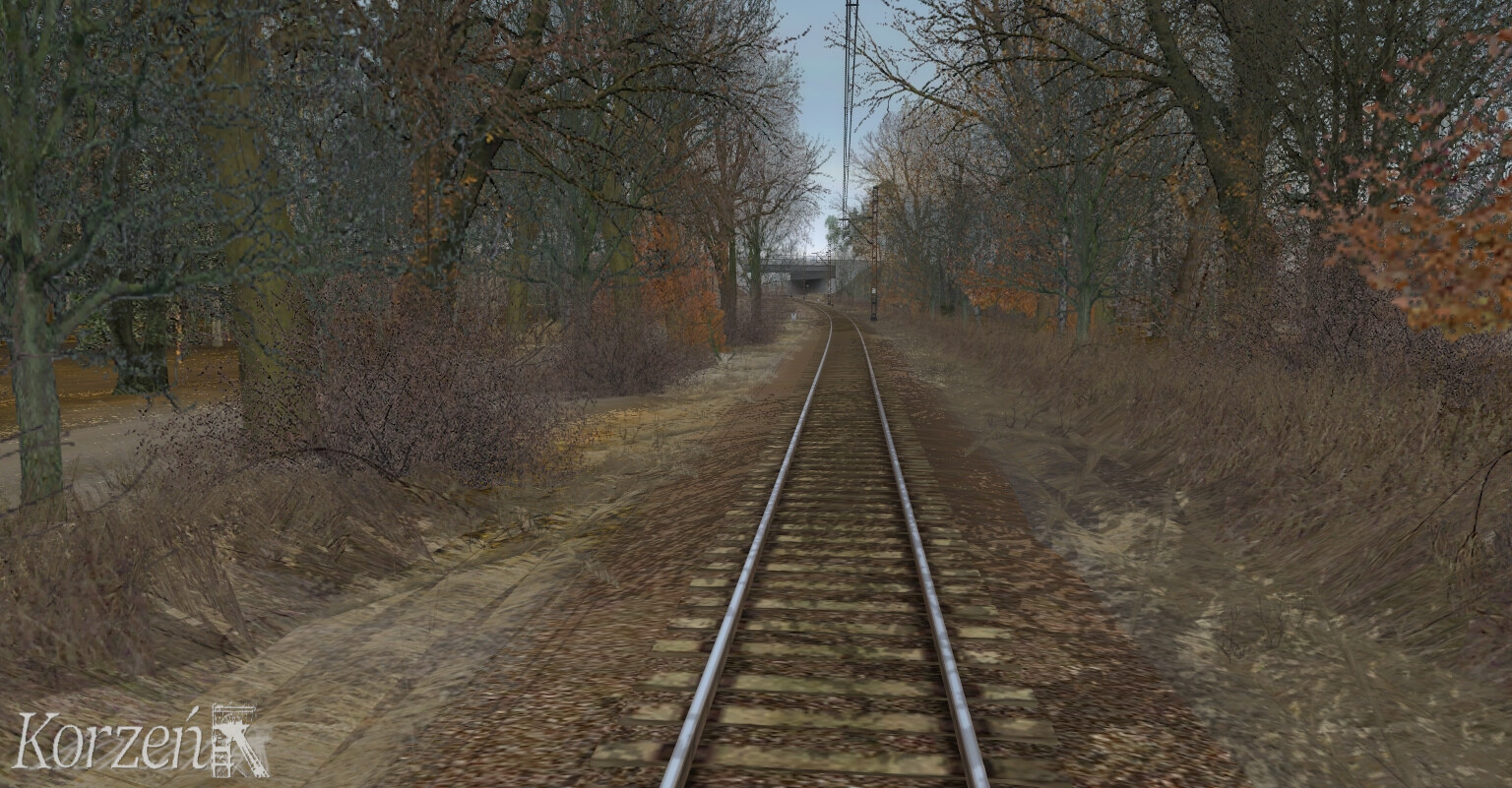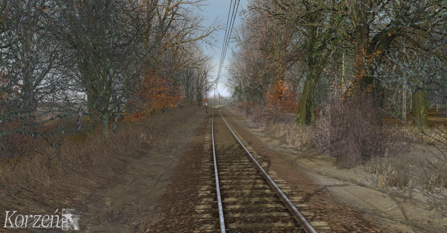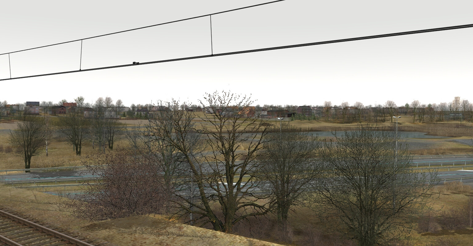 Zająłem się budowaniem dalej i dopiero zajrzałem do tematu Detali w odległości praktycznie nie ma. Są wyższe drzewka, które widać z daleka i w dużo mniejszym zagęszczeniu niż te bliżej toru. No i domki. Staram się wstawiać tylko minimum tego co będzie widać z torów. W czasie jazd jeszcze na pewno coś poucinam gdzie ocenię że jest zbędne. Nie ma dróg, płotów, latarni. Są tylko tekstury gruntu. Ot magia perspektywy. A z otoczeniem muszę "wyjeżdżać" nieco dalej, bo nasyp ma 17m wysokości więc z kabiny widać całkiem sporo.