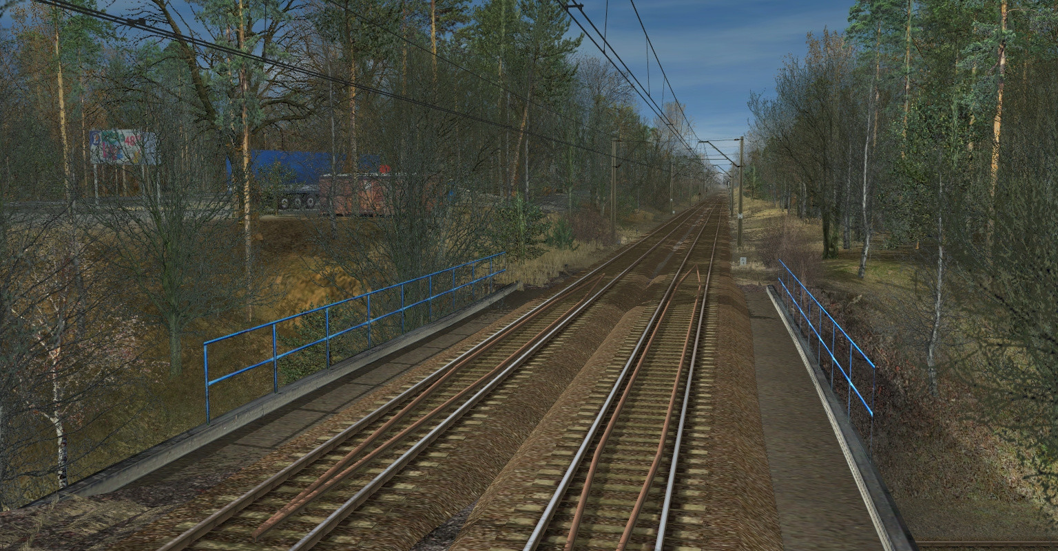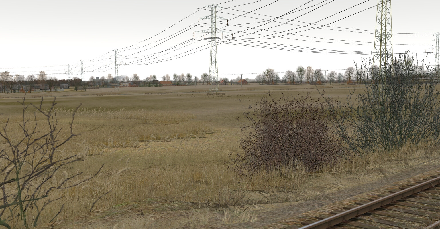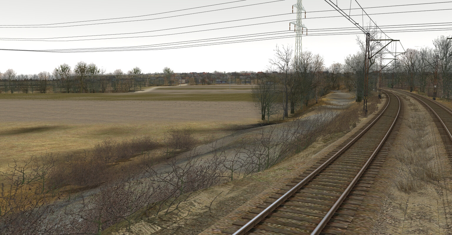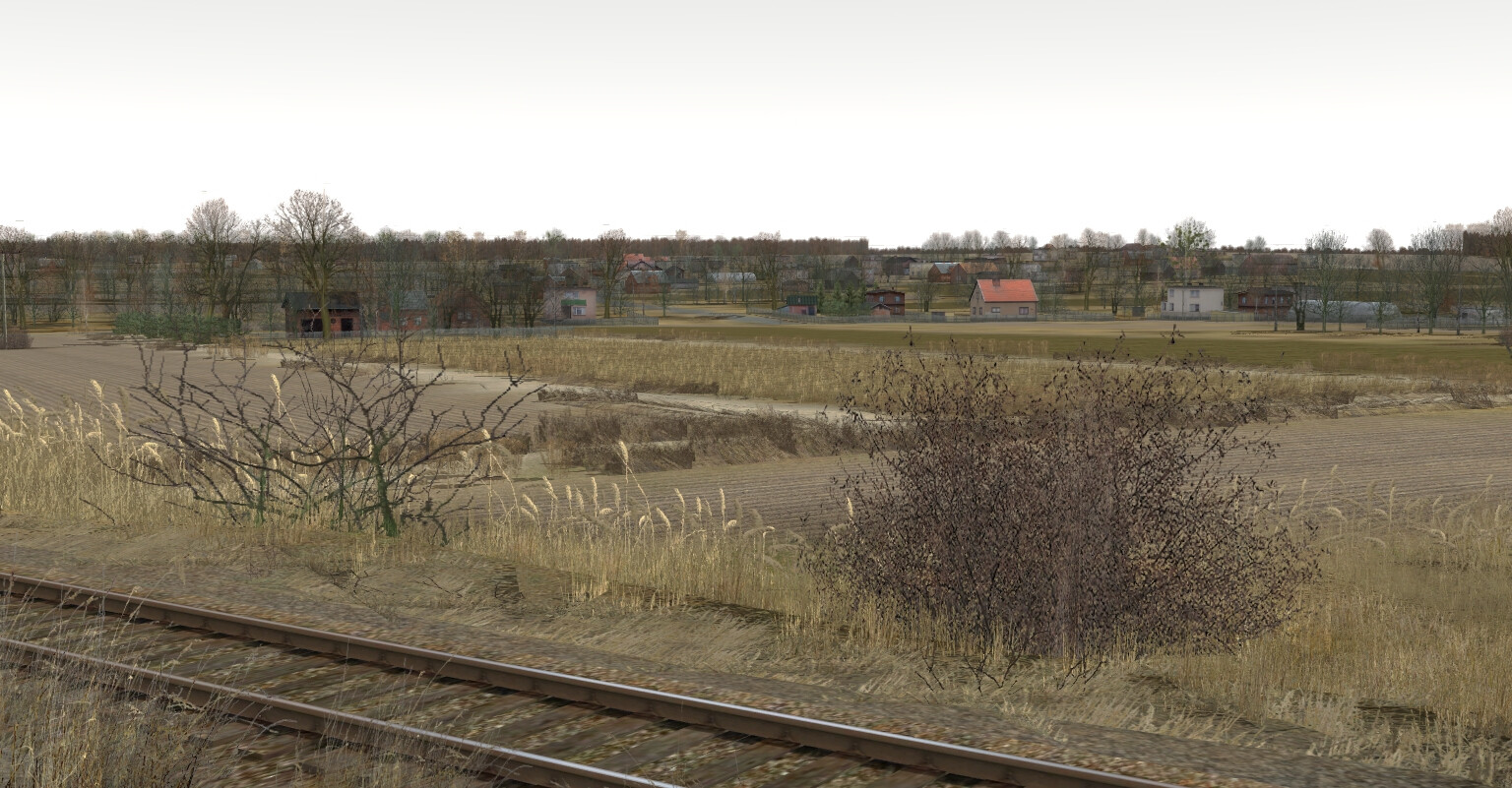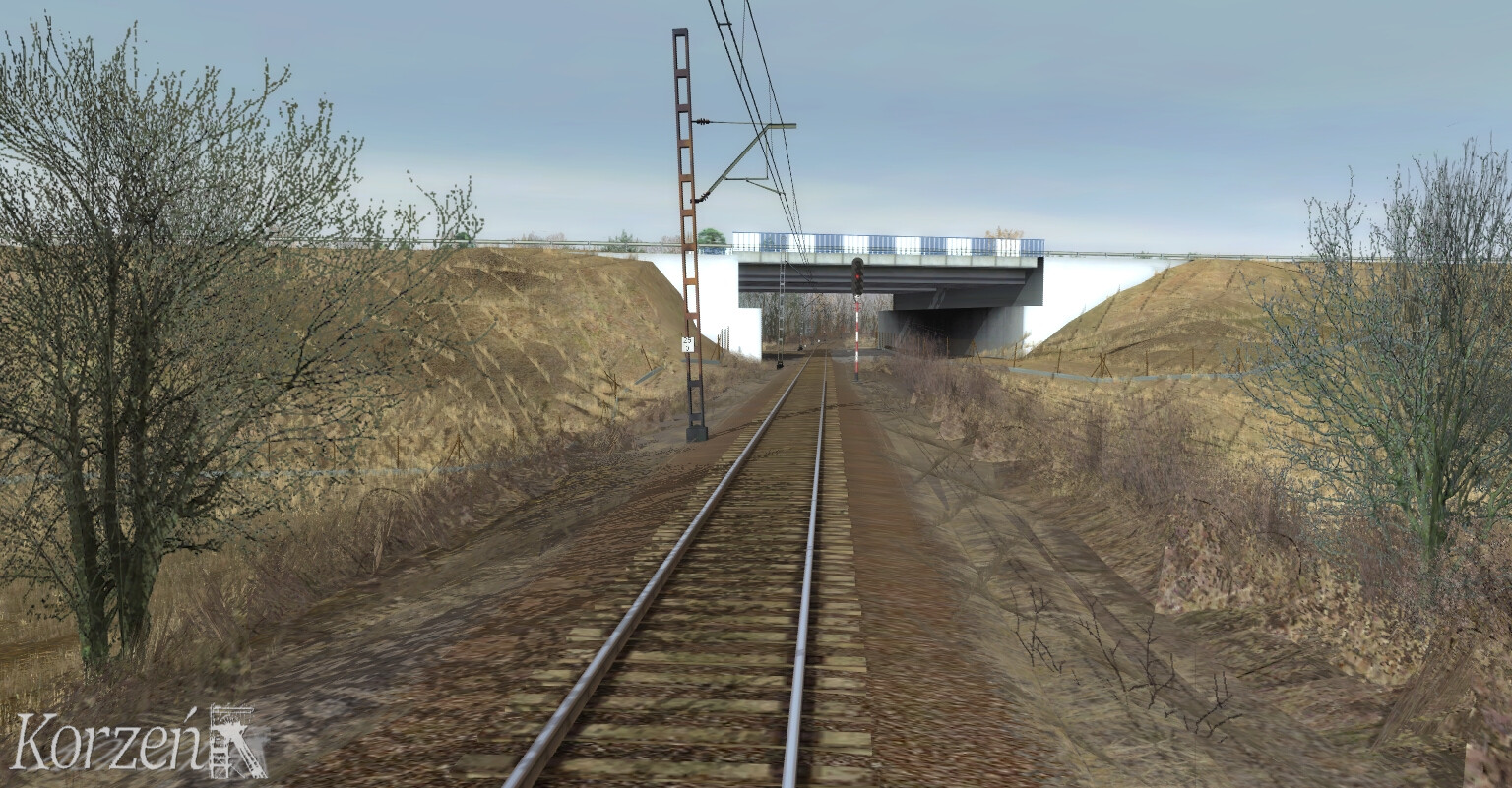 Zająłem się budowaniem dalej i dopiero zajrzałem do tematu Detali w odległości praktycznie nie ma. Są wyższe drzewka, które widać z daleka i w dużo mniejszym zagęszczeniu niż te bliżej toru. No i domki. Staram się wstawiać tylko minimum tego co będzie widać z torów. W czasie jazd jeszcze na pewno coś poucinam gdzie ocenię że jest zbędne. Nie ma dróg, płotów, latarni. Są tylko tekstury gruntu. Ot magia perspektywy. A z otoczeniem muszę "wyjeżdżać" nieco dalej, bo nasyp ma 17m wysokości więc z kabiny widać całkiem sporo.