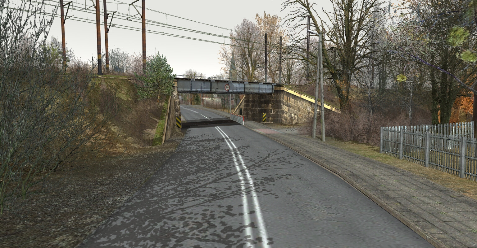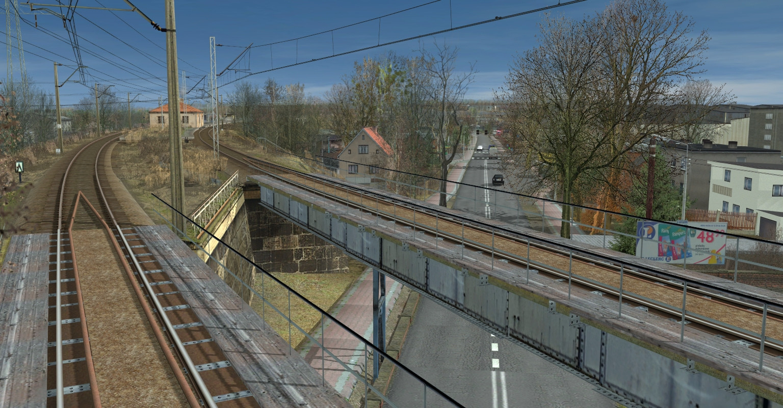 Ulica Zwycięstwa w Szczygłowicach też została dopieszczona. Wjazd do miasta i wiadukt na linii 149. Dodałem mury oporowe, znaki, barierki i inne duperele: