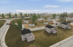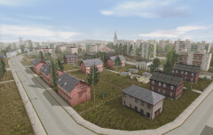 - tutaj wygląda to wszystko trochę skąpo/ubogo. Jeśli miały to być ogródki działkowe, to przydało by się je jakoś "ożywić", dając np. jakieś huśtawki ogrodowe, altanki, drzewka, krzewy, małe szklarnie, itp., itd., żeby nie były to tylko same domki z gołymi zaniedbanymi trawnikami; ogródki działkowe wyglądają raczej tak: