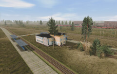 - jeśli to miał być peron przystanku osobowego, to jest on zbyt niski; to jest droga ładunkowa, i nie nadaje się raczej do użycia jako peron; poza tym przy budynku mógłbyś dać jakich chodnik/dojście, żeby nie stał sobie tak zupełnie w trawie, tutaj jest to akurat bezpośrednie sąsiedztwo torów i dbałość o detale jest wskazana.