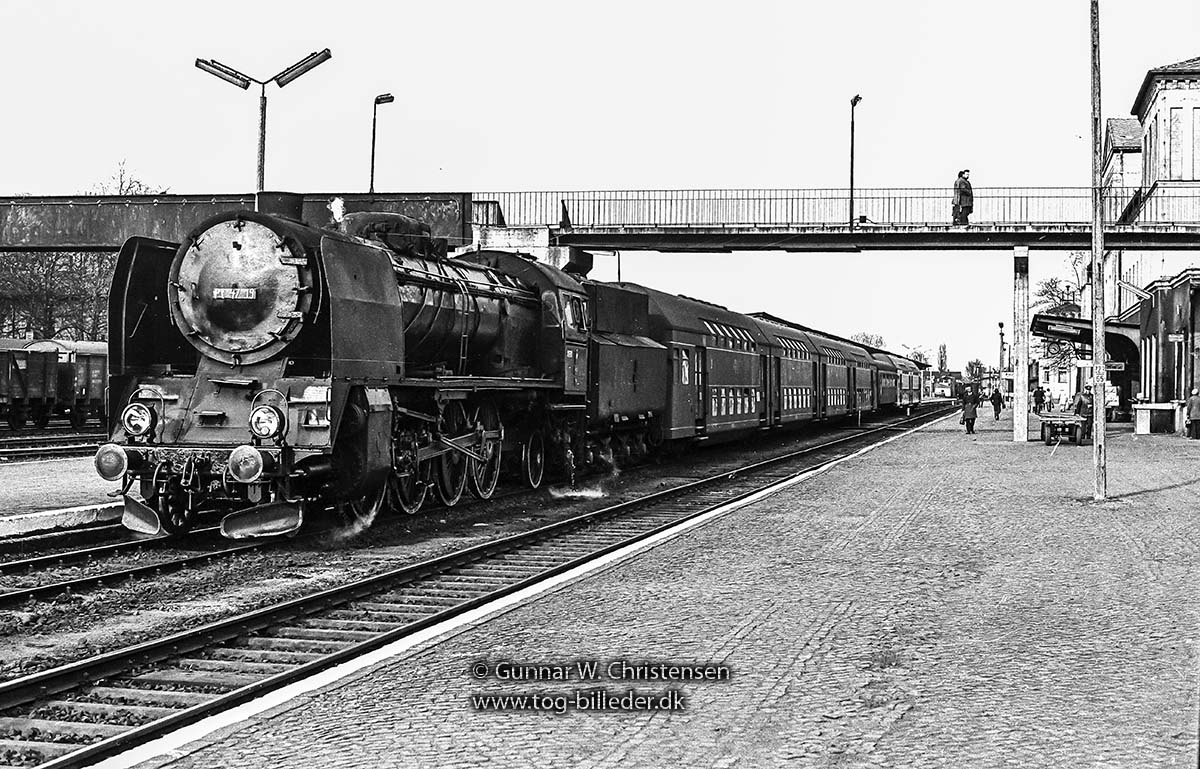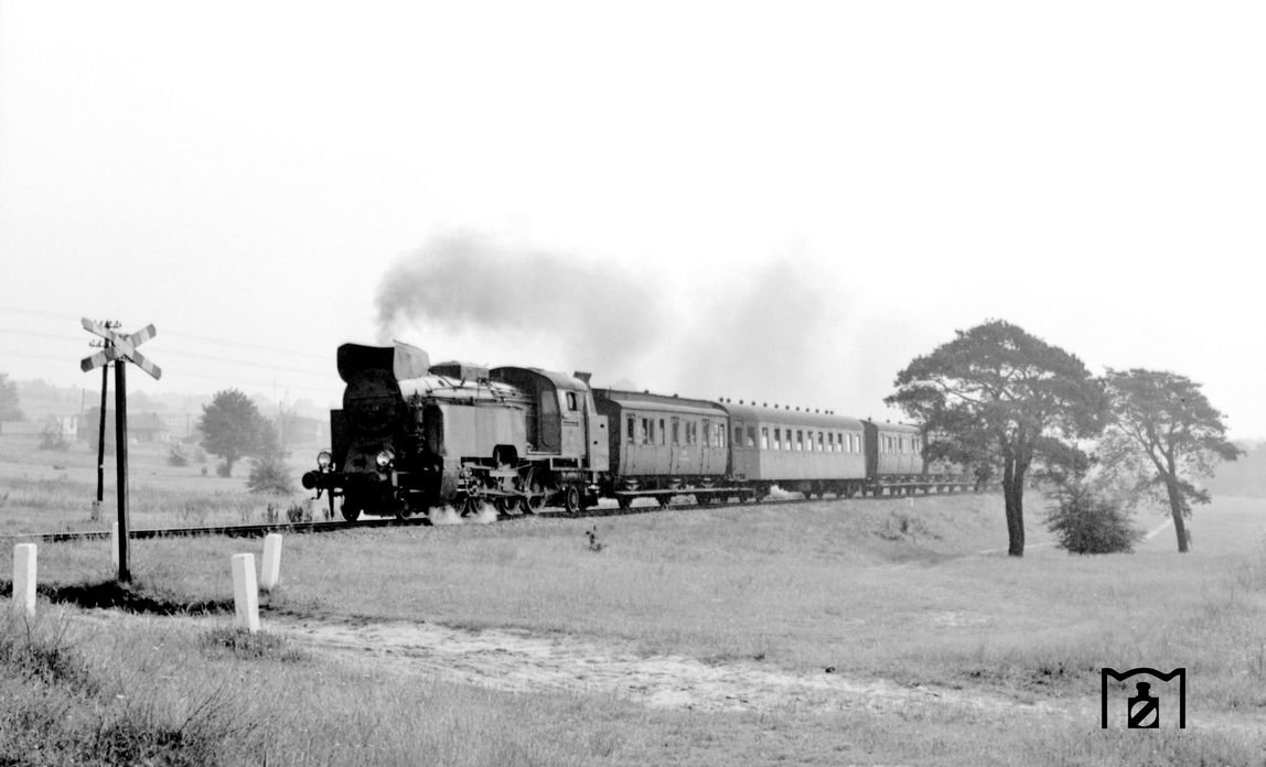 Komentarz: Na fotografii oglądamy krótki pociąg osobowy w transgranicznej relacji łączącej położone na terenie NRD Forst z Żaganiem. Skład współtworzą parowóz pospieszny serii Pt47 oraz dwa wagony bezprzedziałowe klasy 2 typu 120A. Zestawienie nie powinno stanowić trudności w rekonstrukcji do Trainz.