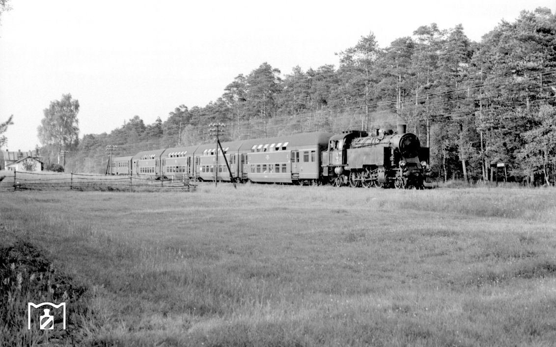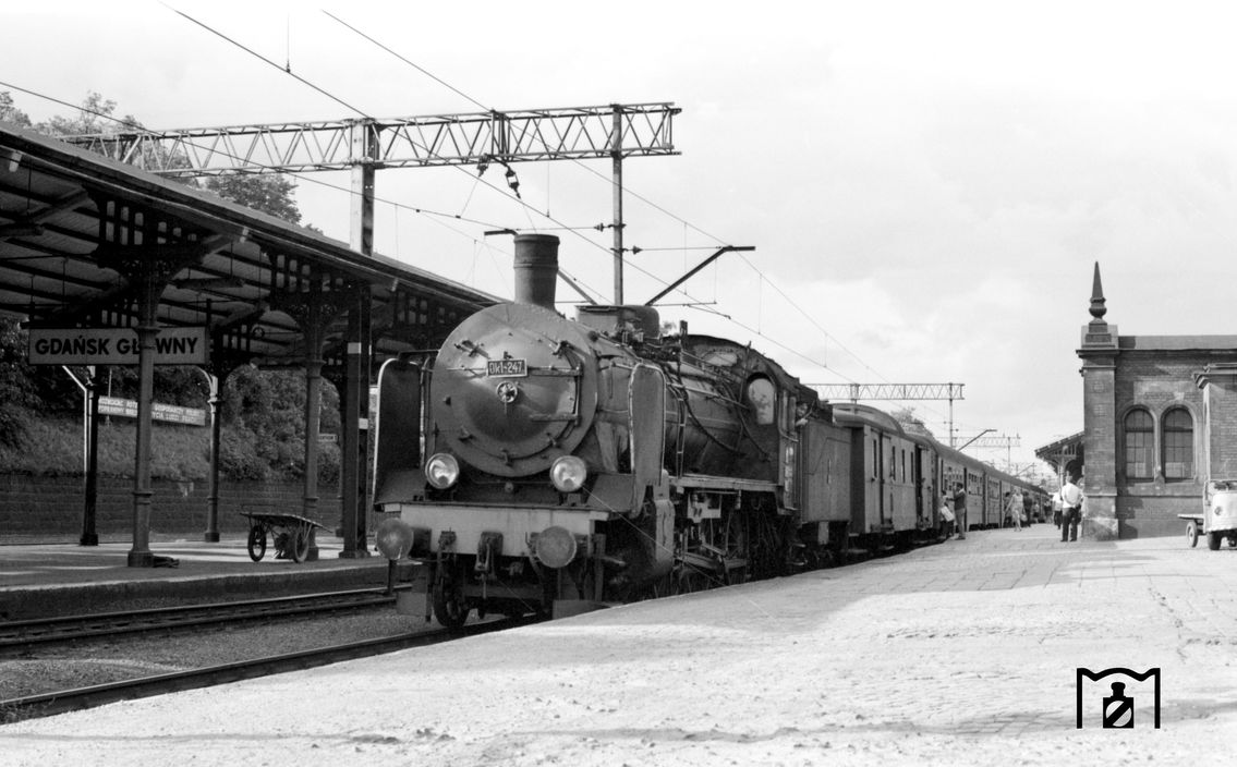 Komentarz: Fotografia dokumentuje zjawisko ongiś będące zupełnym standardem, ale od wielu dekad już zapomniane, mianowicie obsługę pociągów osobowych na korytarzu Gdynia-Malbork parowozami ciągnącymi składy wagonowe (elektryfikacja odcinka Malbork-Tczew nastąpiła dopiero we wrześniu 1983 roku). W kadrze widzimy jeden z tego typu pociągów, którego skład zestawiono z parowozu serii Ok1, wagonu bagażowego typu B-III o polskim przedwojennym rodowodzie oraz pięciu bezprzedziałowych wagonów klasy 2 typu 101A lub 102A. Wierne powtórzenie udokumentowanego w kadrze zestawienia w Trainz nie jest niestety możliwe wskutek braku modelu wagonu bagażowego. Można go jednak zastąpić modelem nieco starszego, poniemieckiego wagonu bagażowego typu Pw4ü-28. W roli maszyny prowadzącej wystąpić może model z www.ptram.eu lub zamiennie np bardziej dostępny/dopracowany model parowozu serii Ty2.