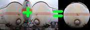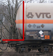 Podpis zdjęcia: idealnie wykonane zdjęcie boku pojazdu - mamy pionowo zarysowany element łączenia czoła beczki z jej bokiem (brudny ciemny spaw) oraz poziomo zarysowane fragmenty ramy wagonu (w tym wypadku części czołownicy). Na nasze potrzeby wystarczą 3-5 zdjęć boku beczki (zależne też od ilości pionowych podziałów, które w przypadku walcowych elementów pod wpływem perspektywy wyginają się znacznie bardziej niż w przypadku elementów pionowych opisanych na prostopadłościanie.
