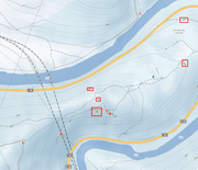 3. Wybieram miejsce na mapie, gdzie lokalizuję szczyt, mierzę jego wysokość względną względem toru (geoportale nie łapią nasypów ale mając warstwicę pod torem, własne obserwacje i cabview można przyjąć jakąś wysokość właściwą prostą matematyką.