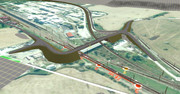 Po rozpędzeniu składu do rozkładowych 100km/h (częściowo 120km/h) rozpoczynamy dalszą podróż wbijając się linią kolejową w kolejne pasmo górskie przez dłuższy czas nie zatrzymując się na żadnym przystanku (mijamy tylko rozebrany z powodu budowy autostrady przystanek Vrutky zastavka). Samą autostradę potraktowałem nieco po macoszemu, bo wprowadza ona niemałe zamieszanie na linii i pozwoliłem sobie ją dodać tylko w niektórych miejscach - to jest jedno z nich. Aktualnie w tym miejscu autostrada kończy się ślepo w związku z budową najdłuższego chyba tunelu drogowego na Słowacji - Visnova.